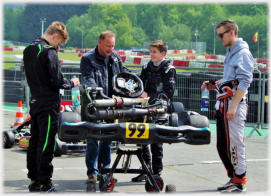 Das Kart ist wieder repariert und einsatzbereit für Vledderveen. Und Niklas ist angriffslustig und